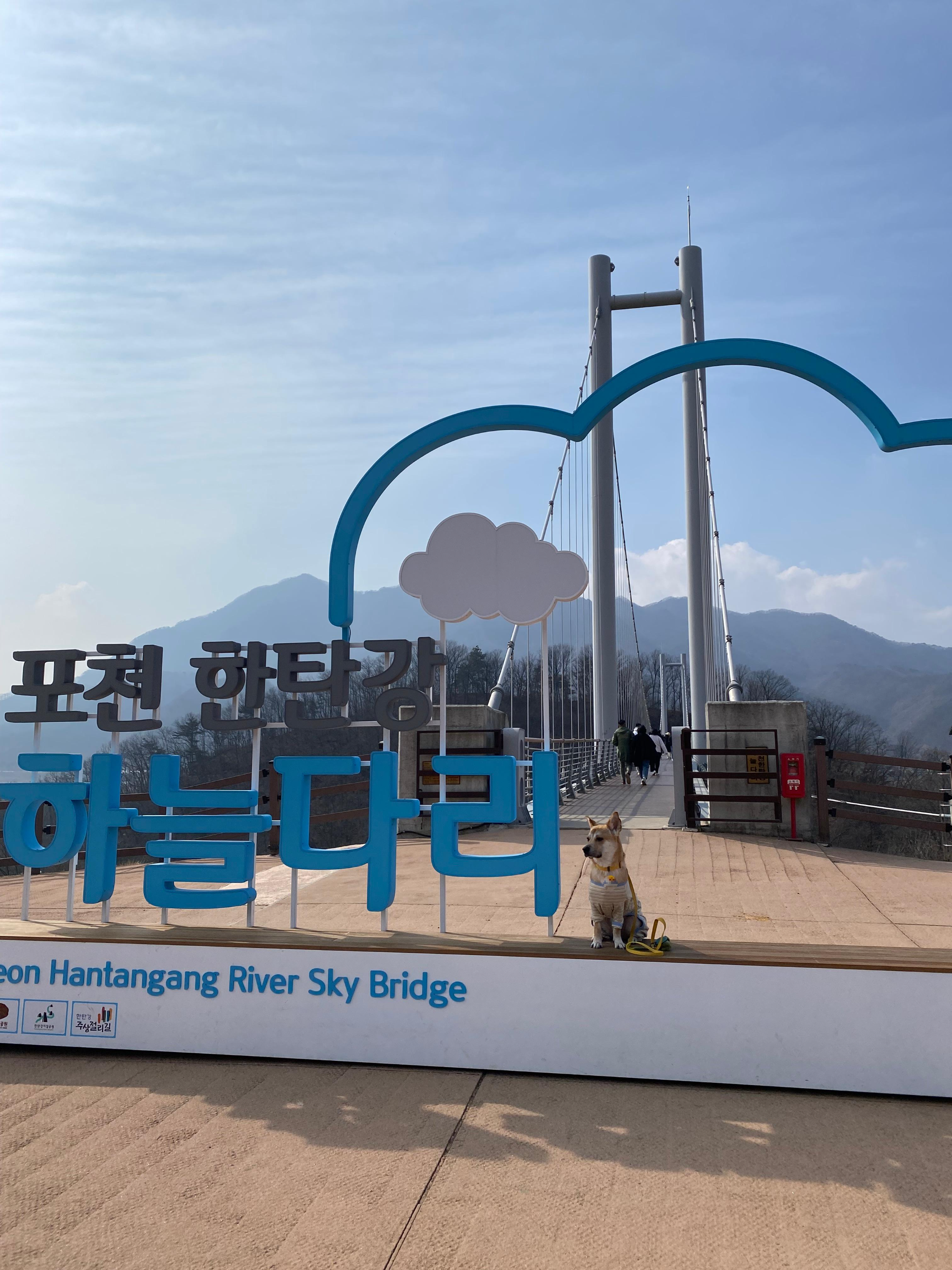 폭포를 감상한 후에는 한탄강 하늘다리를 걸어보는 것도 추천해요! 다리 위에서 내려다보는 한탄강의 풍경이 정말 멋져요. 하늘다리가 넓고 견고해서 반려견과 함께 걷기에 좋아요. 그래도 천천히 안전하게 산책하세요!